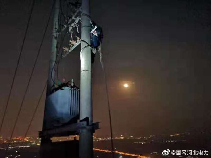 石家莊市鹿泉區供電公司冒著夜色搶修景區頂上故障變壓器