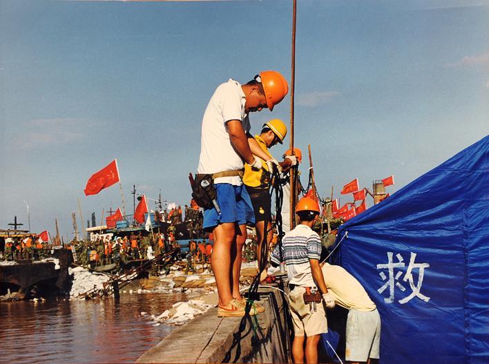 7日15時20分,九江供電局接市政府指示,在全長近5000米的第二條防線上架設照明線路,天黑前必須亮燈。50人的應急小分隊立刻趕赴現場,在堤壩上立桿拉線裝燈。然而,當時的照明條件遠遠滿足不了堵決口的需要。現場勘察后,應急人員決定在決口處圍堰對面50米處的一艘躉船上臨時加裝探照燈。8日4時,4盞500瓦探照燈將現場照得亮如白晝。