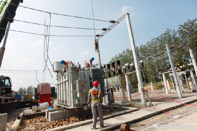9月6日,電力工程技術人員正在對渦陽35千伏順河變電站進行檢修消缺。