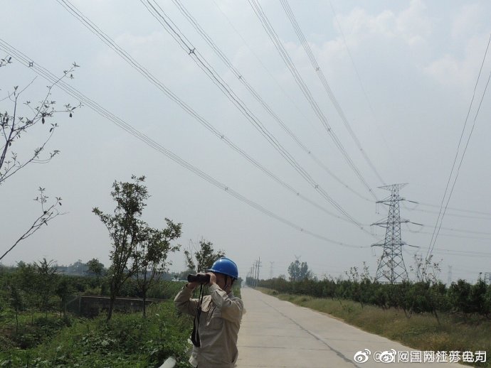 【開展保電特巡】9月9日,國網江蘇檢修公司徐州運維站輸電運檢班在500千伏艾姚、艾湖線開展保電特巡工作。烈日當空,班組人員不懼炎熱,對“三跨”區域、耐張桿塔展開重點巡視,為電網的安全運行保駕護航。 ????