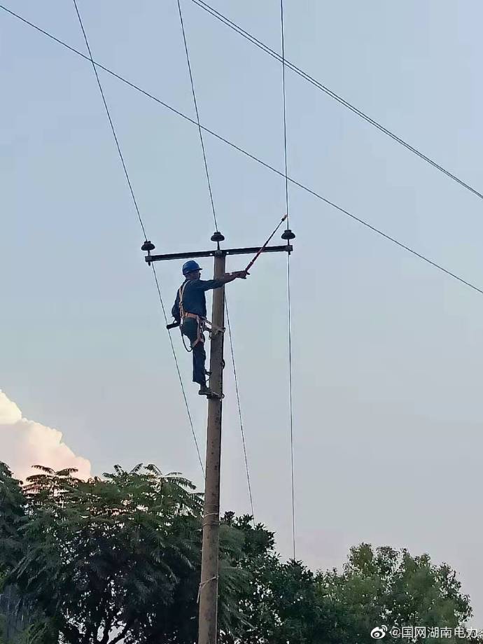 雖是秋季,但中午的陽光一如夏日的火辣!9月9日中午,國網耒陽供電公司郊區供電所的電力蜀黍在烈日下開展桿上作業,及時處理10千伏電|線湘南監獄支線013號桿導線故障!