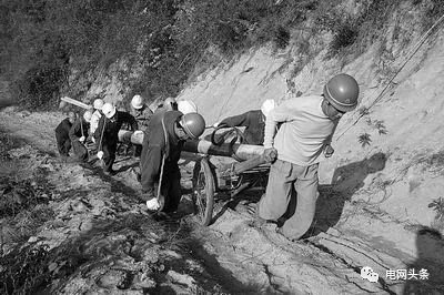 ?在河南山區,當年供電員工用架子車拉著線桿進山。