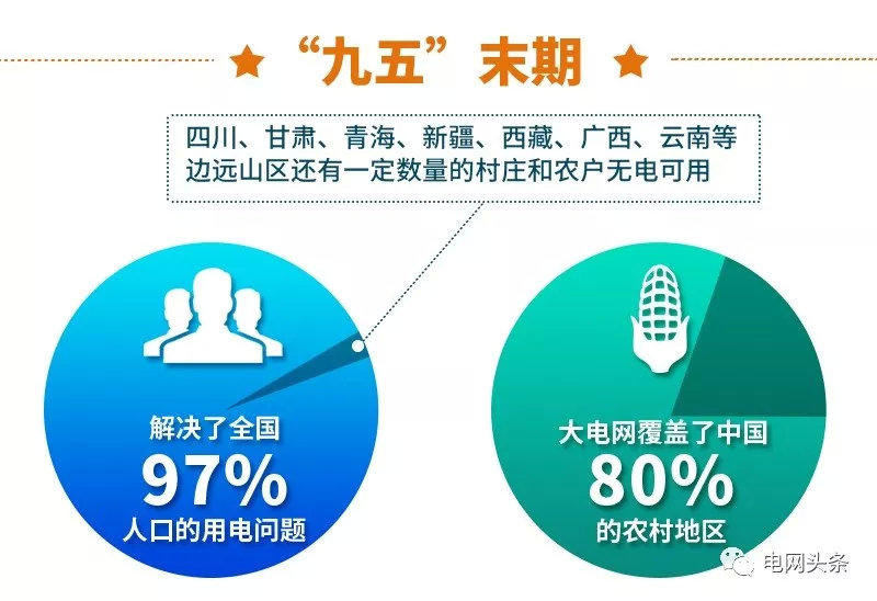 其實在“九五”末期,我國農村經過初級電氣化的大發展和第一次大規模的城鄉電網改造,已經解決了全國97%人口的用電問題:大電網覆蓋了中國80%的農村地區,內陸經濟發達的主要省份率先實現了戶戶通電。只有四川、甘肅、青海、新疆、西藏、廣西、云南等地的邊遠山區還有一定數量的村莊和農戶無電可用。