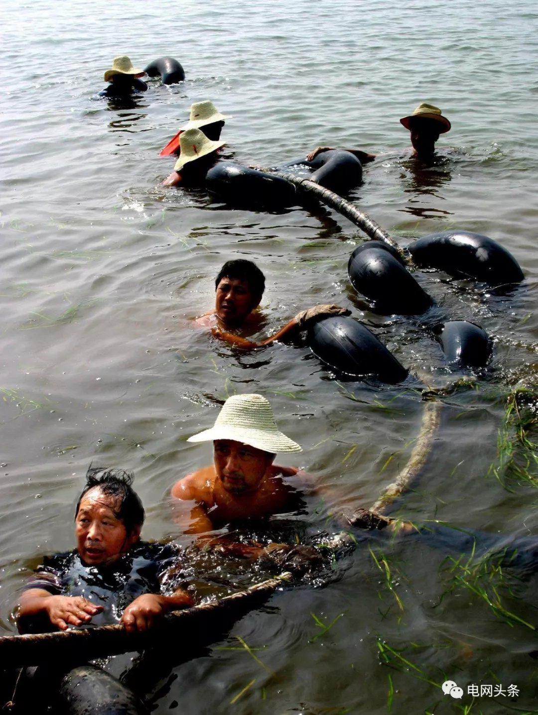 ?湖北“戶戶通電”工程現場,供電員工泡在水中敷設深水電纜。