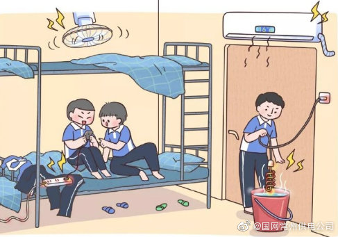 【校園安全用電:寢室篇】寢室作為住校同學休息的地方,是最容易引起用電安全問題的區域,不少校園用電安全事故就發生在宿舍,需要重點關注。不要私自使用違禁電器,如熱得快、電水壺、電飯鍋等;嚴禁私拉電線,可能會引發電線短路等意外事故;不要為了便宜而選購那些劣質的電器產品,必須選購正規合格電器產品;雷雨天不使用電器,宿舍無人時關閉電源,除了安全外也能節省電費。午休時也要關閉電源,以免在熟睡中發生火災,造成危險。