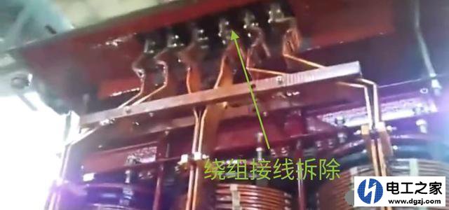 將器身里面滲油的一相繞組與導(dǎo)電桿連接的螺絲卸開。