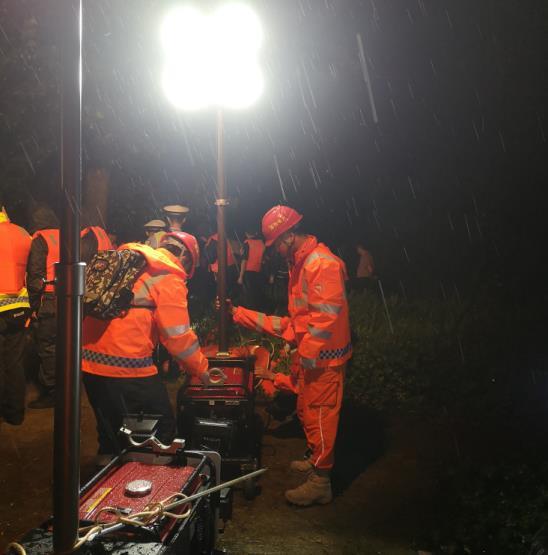浙江杭州富陽(yáng)區(qū)供電公司員工在暴雨中為新沙島、五豐島居民提供應(yīng)急照明。黃輝 攝