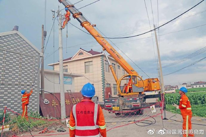 【戰高溫改電網 保障小微企業用電】7月27日,國網東臺市供電公司電力施工人員戰高溫,為溱東鎮開莊村小微企業改造供電線路,滿足發展用電需求,保障盛夏可靠用電。 ????