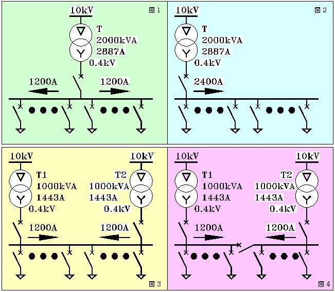這樣做的最大好處是:饋電斷路器出口處的短路電流小于或者等于變壓器的短路電流,因此各個饋電斷路器的極限短路分斷能力亦按單倍變壓器短路電流來考慮。
