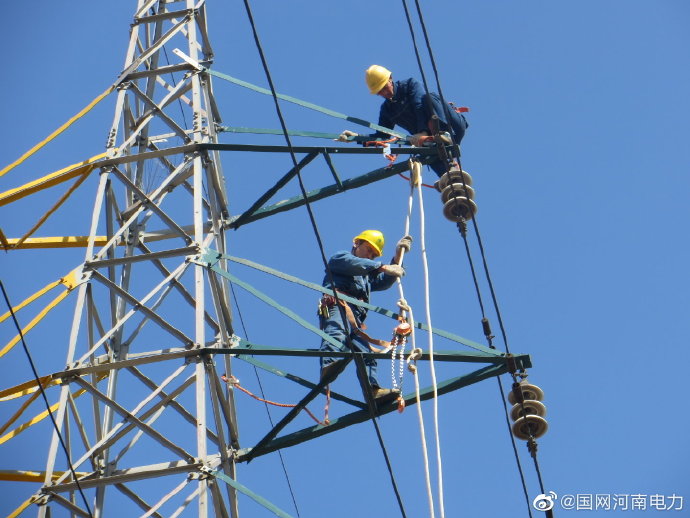 【秋日帶電忙不停 居民用電有保障】11月4日, 國網陽信縣供電公司帶電作業人員在10千伏李屋線81號桿處進行帶電接引流線工作,并加裝橫擔一副。經過近一個半小時的高空作業順利完成本次任務,進一步增強線路供電能力,保障居民用電安全可靠。 ????