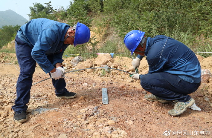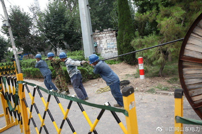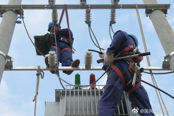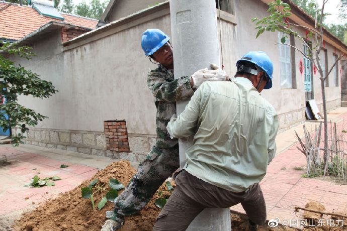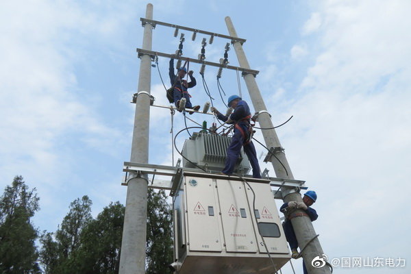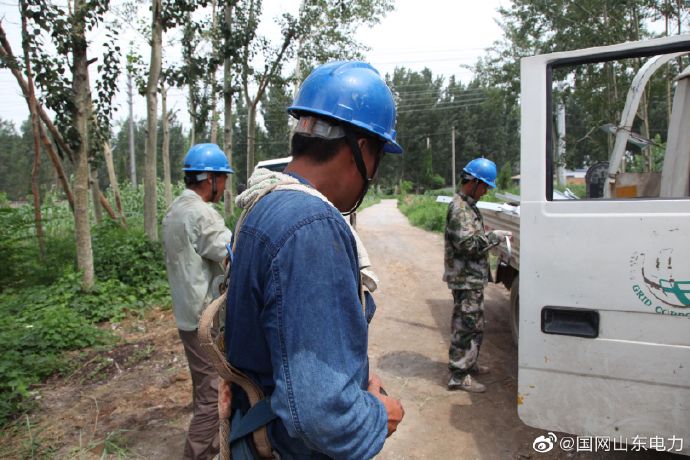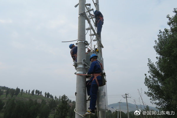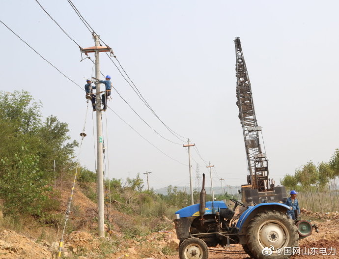 【頭頂烈日施工 揮灑汗水為民】7月31日,國網煙臺市福山區供電公司施工人員冒高溫濕熱天氣,對清洋鎮10千伏包家溝2臺區新建工程施工作業,新立電桿17基,變壓器一臺,架設線路1.4公里,炎炎夏日保障周邊區域可靠供電。 ????