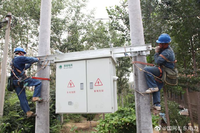 梁山縣供電公司新立電桿6基、新建低壓架空絕緣線0.31千米、新增一臺400千伏安變壓器