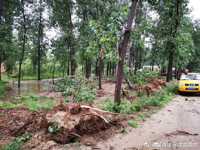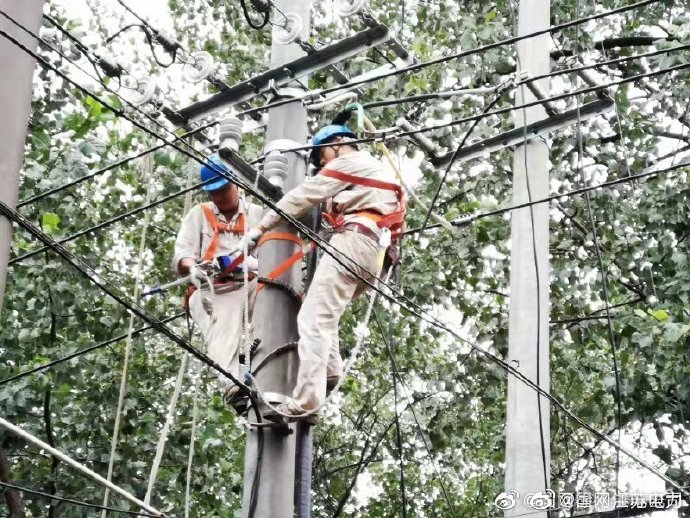 【58年大樹砸斷線,奮力搶修保供電】8月1日,沛縣鹿樓鎮鴛樓高莊、丁莊大隊受局部強風暴雨惡劣天氣影響,線路受損嚴重,國網沛縣供電公司鹿樓供電所員工第一時間趕到現場,并根據搶修預案,積極清理通道,搶修受損線路,及時消缺安全隱患,確保該地區居民正常用電。 ????