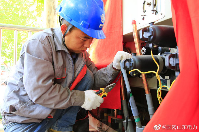 當前,隨著氣溫持續走高,某小區用電負荷持續攀升,原配變運行時間久遠已不堪重負。6月17日,國網濱州供電公司電纜運檢班工作人員在10千伏富周線商廈環網柜2開關,為小區新上630千伏安箱變接火,保障居民清涼度夏。 ????