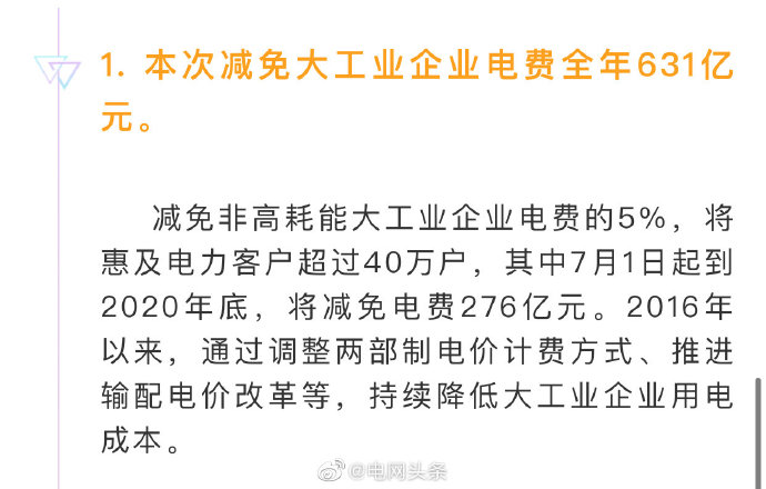 2018年的政府工作報告提出了一般工商業平均電價降低10%的要求。公開資料顯示,僅國家電網有限公司去年就新降低各類客戶用電成本915億元,超額完成了這一目標任務。