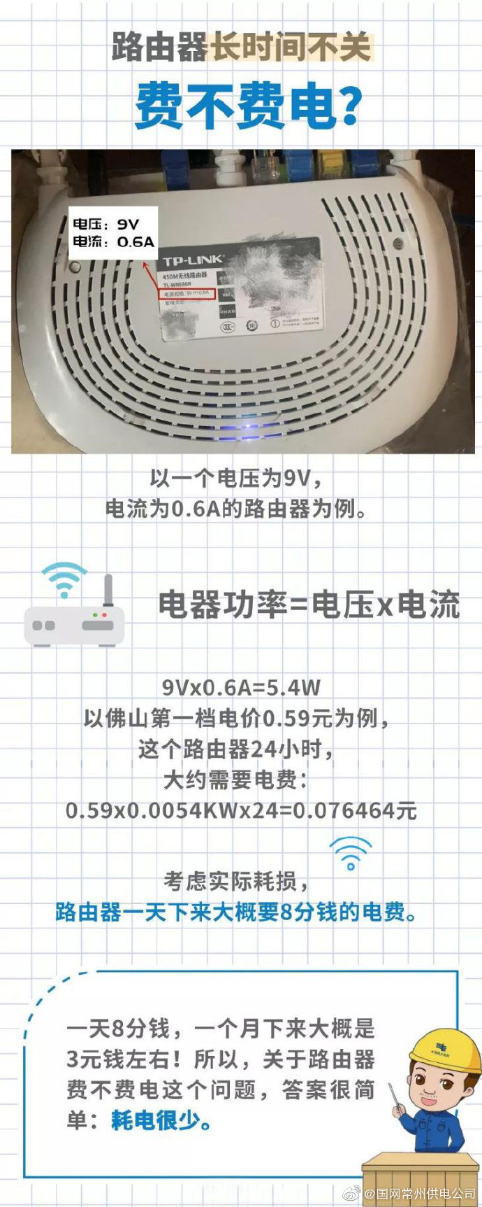 家里WiFi從來不關,究竟要耗多少電? http://m.rscxwgt.cn/news/baike/12846.html Tue, 03 Dec 2019 14:00:33 +0000 http://m.rscxwgt.cn/?p=12846 【家里WiFi從來不關,究竟要耗多少電?】不知道大家在網上沖浪的時候,看著邊上一閃一閃的路由器,會不會有這么一個疑問:作為“網上一級沖浪選手”,家里的路由器幾乎沒關過,一天到晚閃啊閃的,耗電到底厲不厲害呀?看完這個科普你就明白啦!