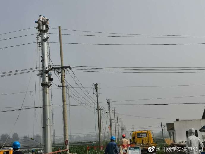 【冒雨搶修雷擊設備】8月27號凌晨,金湖縣金南鎮金南1號臺變遭受雷擊斷電,國網淮安金湖縣供電公司迅速組織6名施工人員冒雨進行搶修,并對該臺變配電箱進行了更換,快速恢復用戶的正常用電。