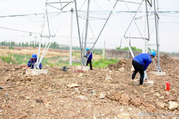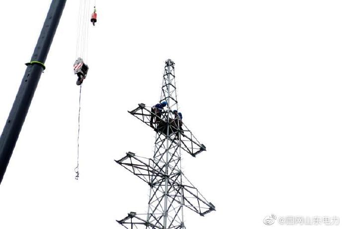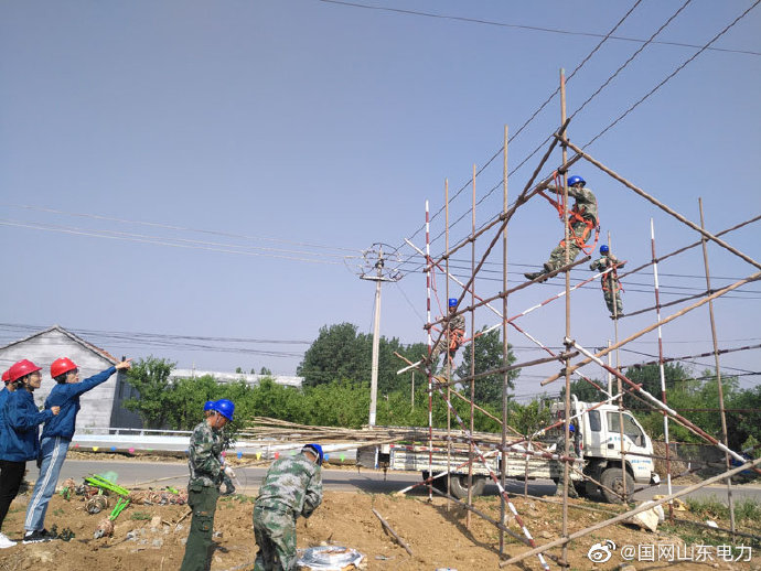 6月12日,@國網臨朐縣供電公司員工冒高溫炎熱在35千伏冶寺線組立A1號桿塔、搭設跨越架牽放26號桿塔導線,全力推進災后重建項目建設,打造西南部山區堅強健康電網。 ????