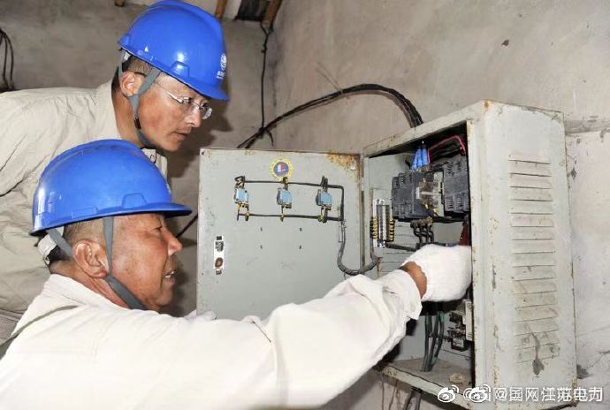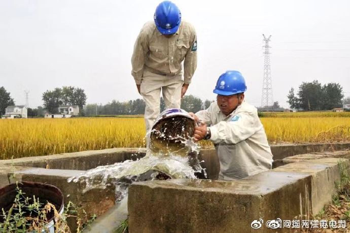 高郵市供電公司維護丘陵段的稻田用電打水口